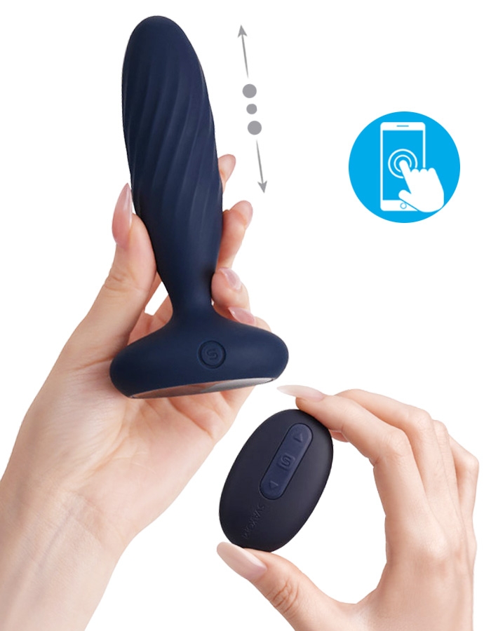 Анальная вибропробка Svakom Jordan – необыкновенная тёмно-синяя втулка с функциями вибрации и возвратно-поступательными движениями.