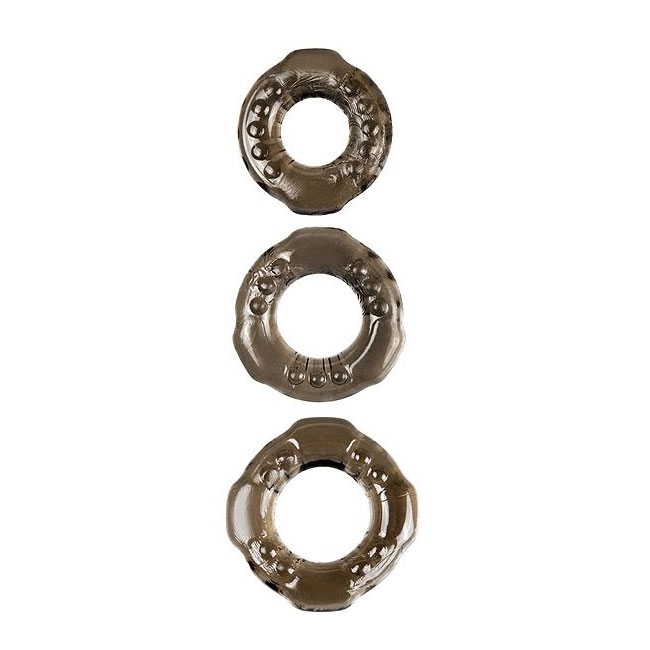 Набор из 3 дымчатых колец разного диаметра для сохранения эрегированного состояния полового члена.